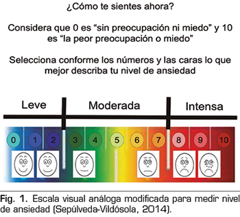 Se ha empleado la escala visual análoga modificada como instrumento de medida para valorar el nivel de ansiedad.