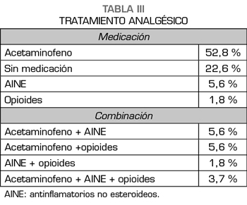 Resultados: Se recolectaron los datos de 93 pacientes, de las que el 56,9 % presentaron dolor, con mayor prevalencia de dolor crónico en un 52,8 %; el 54,7 % clasificaron su dolor como nociceptivo y el 45,2 % como dolor neuropático con dolor intenso en el 49,0 %. El dolor fue tratado en el 52,8 % con acetaminofeno, y un 22,6 % no tenían ningún tratamiento.