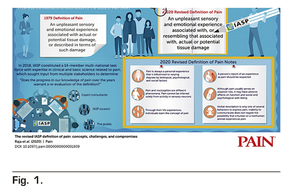 5. Raja SN, Carr DB, Cohen M, Finnerup NB, Flor H, Gibson S, et al. The revised International Association for the Study of Pain definition of pain: concepts, challenges, and compromises. Pain. 2020. DOI: 10.1097/j.pain.0000000000001939.