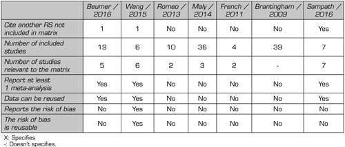 Table II. Extract of data extracted from systematic reviews
