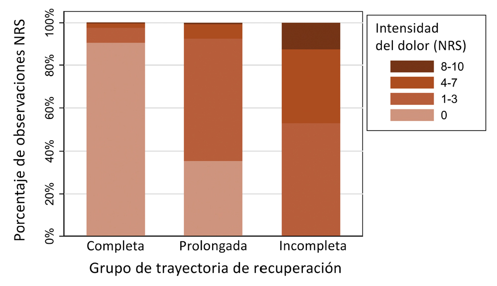 Figura 3. Distribuciones de las puntuaciones NRS en los grupos de trayectoria de recuperación.
