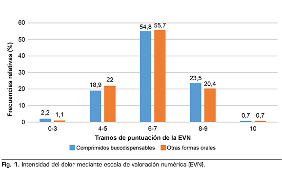 Conclusiones: Entre los distintos grupos de tratamiento no se encontraron diferencias estadísticamente significativas en el perfil de los pacientes, ni en el grado de adherencia a la medicación. Los comprimidos bucodispersables Paxiflas® han demostrado un mayor grado de satisfacción y preferencia por parte de los pacientes con dolor musculoesquelético agudo y crónico moderado e intenso frente a otras formas orales.
