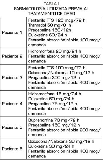 Conclusions: FOD has proved to be a successful treatment in rescuing the patients from a living hell out of which they would have found it impossible to leave without qualified help. We deem it safe with the right ICU surveillance, since no major complications have occurred, but a thereafter following and help is mandatory, since, like any other patient attended at a Pain Clinic, they require a favouring social and familiar environment to avoid any relapse. Finally, and given our results, we consider this detoxifi cation method right and safe but highly costly in resources.