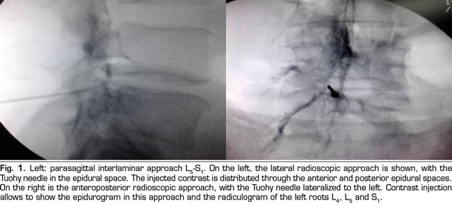 Epidural betamethasone injection in lumbosacral radicular syndrome: effi cacy evaluation for interlaminar and transforaminal approaches