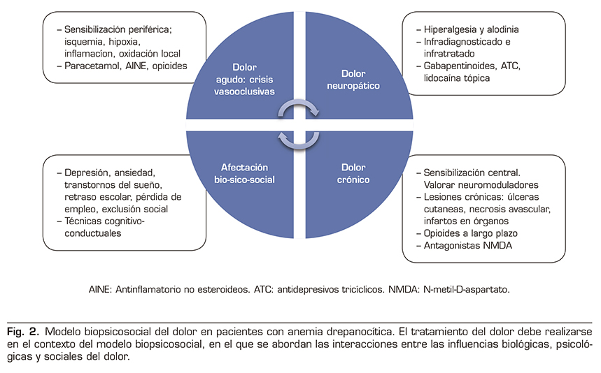 Mugabure B, González S, Uría A, Osorio A. Fisiopatología clínica en pacientes con enfermedad de células falciformes: la transición del dolor agudo al crónico. Rev Soc Esp Dolor 2020; 27(4): 257-268 / DOI: 1020986/resed20203814/2020
