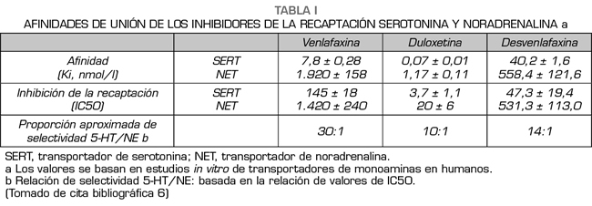 Principales diferencias farmacodinámicas y afinidad sobre los receptores entre los inhibidores de la recaptación de serotonina-noradrenalina: implicaciones clínicas en el manejo del dolor neuropático