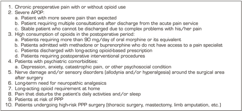 13. Katz J, Weinrib A, Fashler SR, Katznelzon R, Shah BR, Ladak SS, et al. The Toronto General Hospital Transitional Pain Service: development and implementation of a multidisciplinary program to prevent chronic postsurgical pain. J Pain Res. 2015;8:695-702. DOI: 10.2147/JPR.S91924.