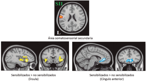 La participación de regiones anteriores como el cíngulo anterior y el putamen ventral bilateral sugieren que el fenómeno de sensibilización central podría estar mediado por comportamientos aprendidos (por ejemplo, la asociación del dolor a situaciones del día a día).