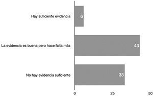 Fig. 2. Evidencia sobre polifarmacia. Número de respuestas a la pregunta de cuánta evidencia creen que hay sobre uso de polifarmacia en dolor neuropático