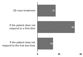 The answer to the question about the most frequent use of polypharmacy was mostly in patients who did not respond to a partial or total first line analgesic. According to the answers, this happens in 75 % of patients. This may be due to lack of efficacy at maximum doses of drugs or the association of different treatments looking for different targets, even though the maximum dose has not been reached with the first therapy; we have not explored this response and it is really difficult to know because clinical guidelines offer both possibilities (14,19). Despite the wide use of combination therapy, more than 92 % agree that there is not enough evidence about polypharmacy, which shows the need to endorse its use. This survey shows no relationship between the percentage of patients in polypharmacy and respondents' opinion of existing evidence. There are also no differences between the percentage of patients with combination of drugs with label use and with off-label use and the time of initiation. However, there is a difference between the percentage of patients in polypharmacy and the decision about when to prescribe it. When the percentage of patients in polypharmacy is more than 60 %, more prescription of initiation is found (more information can be seen in the figures in the annexes, as supplementary material, on the website).