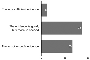 Fig. 2. Evidence on polypharmacy. Number of responses to the question of how much evidence do they believe there is about the use of polypharmacy in neuropathic pain.