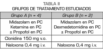 Resultados: Describimos los resultados obtenidos con el uso de dos pautas en las que se combinan distintos grupos farmacológicos usados para la deshabituación: midazolam, propofol, ketamina, dexmedetomidina, clonidina y naloxona, en la consecución del mantenimiento del paciente libre de opioides garantizando la estabilidad hemodinámica, respiratoria y la seguridad biológica del paciente.