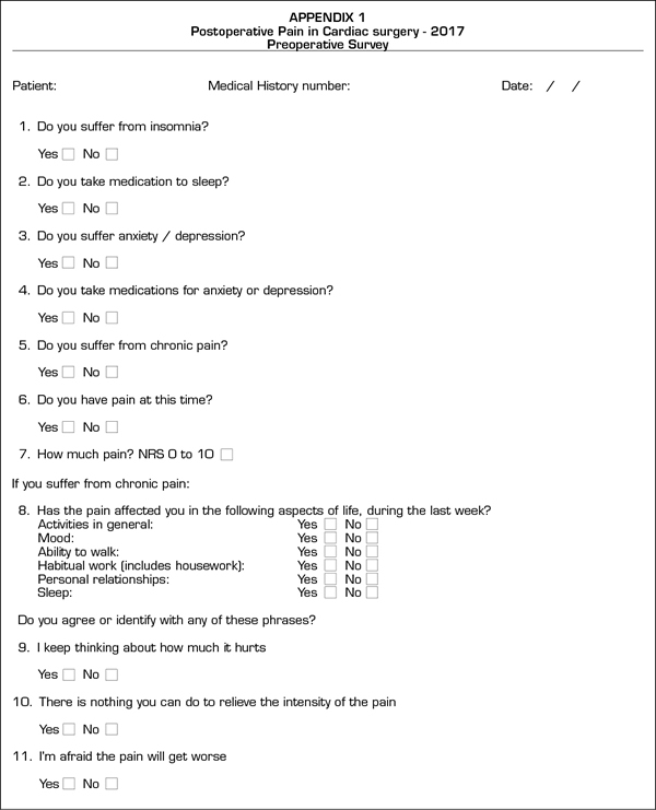 16. Roca J, Valero R, Gomar C. Pain locations in the postoperative period after cardiac surgery: Chronology of pain and response to treatment. Rev Esp Anestesiol Reanim. 2017;64(7):391-400.