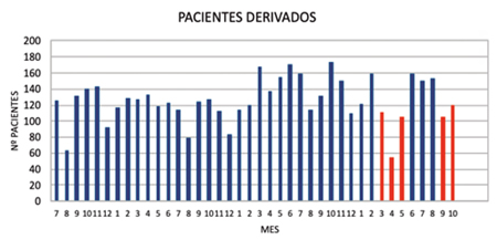 Pacientes y métodos: Estudio descriptivo transversal sobre 5000 pacientes derivados a nuestra Unidad entre 2017 y 2020. Se recogieron de forma anónima los siguientes datos: número de pacientes remitidos por mes, edad, sexo, servicio remisor, localización del dolor, pacientes/interconsultas preferentes, rechazados y atendidos previamente. De los 1000 primeros