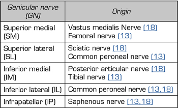 12. Valls JMO, Vallejo R, Pais PL, Soto E, Rodríguez DT, Cedeño DL, et al. Anatomic and ultrasonographic evaluation of the knee sensory innervation a cadaveric study to determine anatomic targets in the treatment of chronic knee pain. Reg Anesth Pain Med. 2017;42(1):90-8.