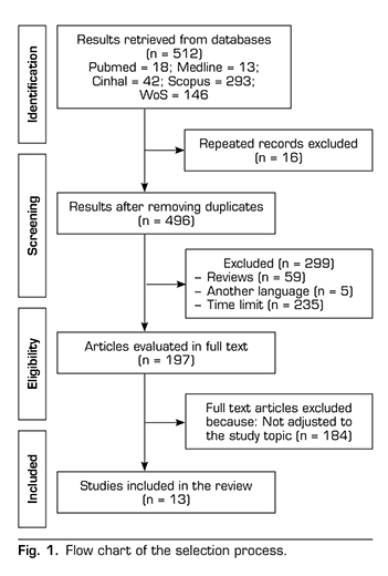 Material and methods: To make this dissertation, a review of the scientific literature was carried out by a systematized search in the Pubmed, CINHAL, Medline, Scopus and Web of Science databases, in January 2020. The inclusion criteria were: to be documents written in English or Spanish and published in the last 5 years. The exclusion criteria were: review studies, and articles repeated in other databases or that addressed other topics.