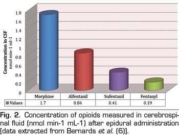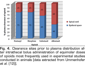 Although there is no either ideal analgesic or route of neuraxial administration, clinicians alike continue to search for compounds with qualities which may approach this idea. However, it´s a demonstrated fact that spinal administration of an opioid drug does not always guarantee segmental and selective analgesia into the spinal cord. This point is valid due to partial reuptake of the drug to systemic blood circulation reaching specific brain opioid receptors, rather than the differences are explained by variations in the clearance rate from the cerebrospinal fluid. Published evidence from either human or animal experimental studies indicates that bioavailability in the spinal cord biophase is negatively correlated with liposolubility. Therefore, opioid spinal cord bioavailability is higher for hydrophilic opioids like morphine, than for lipophilic ones such as fentanyl, sufentanil or alfentanil.