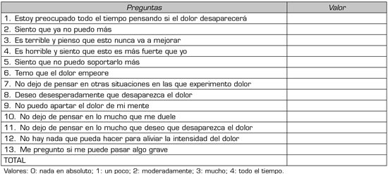 11. Seyler A, Hernández L, Freyre MA, González M, Sullivan MJL. Validez de la Escala de Catastrofización del Dolor. Dolor. 2014;23(61):18-24.
