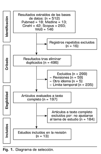 Material and methods: To make this dissertation, a review of the scientific literature was carried out by a systematized search in the Pubmed, CINHAL, Medline, Scopus and Web of Science databases, in January 2020. The inclusion criteria were: to be documents written in English or Spanish and published in the last 5 years. The exclusion criteria were: review studies, and articles repeated in other databases or that addressed other topics.
