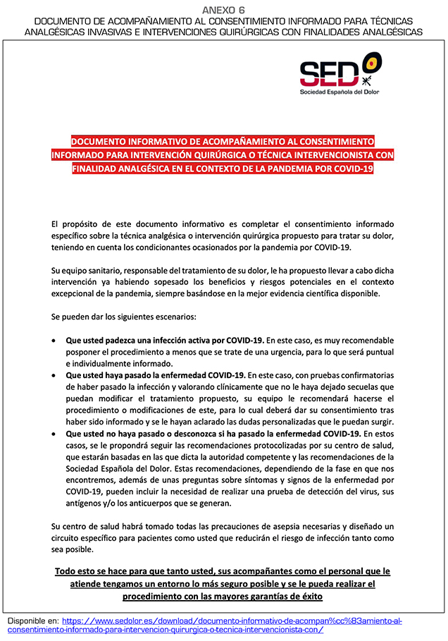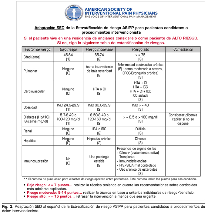 31. Sociedad Española del Dolor. Adaptación SED al español de la Estratificación de riesgo ASIPP para pacientes candidatos a procedimientos de dolor intervencionista [Internet]. 13 de mayo de 2020 [consultado el 27 de mayo de 2020]. Disponible en: https://www.sedolor.es/download/adaptacion-al-espanol-de-la-estratificacion-de-riesgo-asipp-para-pacientes-candidatos-a-procedimientos-de-dolor-intervencionista/