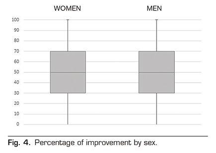Results: The final number of patients included was 179. The Failed back surgery syndrome (FBSS) was the diagnostic indication in 112 patients (62.57 %). The mean percentage of improvement described by the patients after the SCS implant was 47.99 ± 27.3 %. There were no differences in the improvement with respect to age or gender.