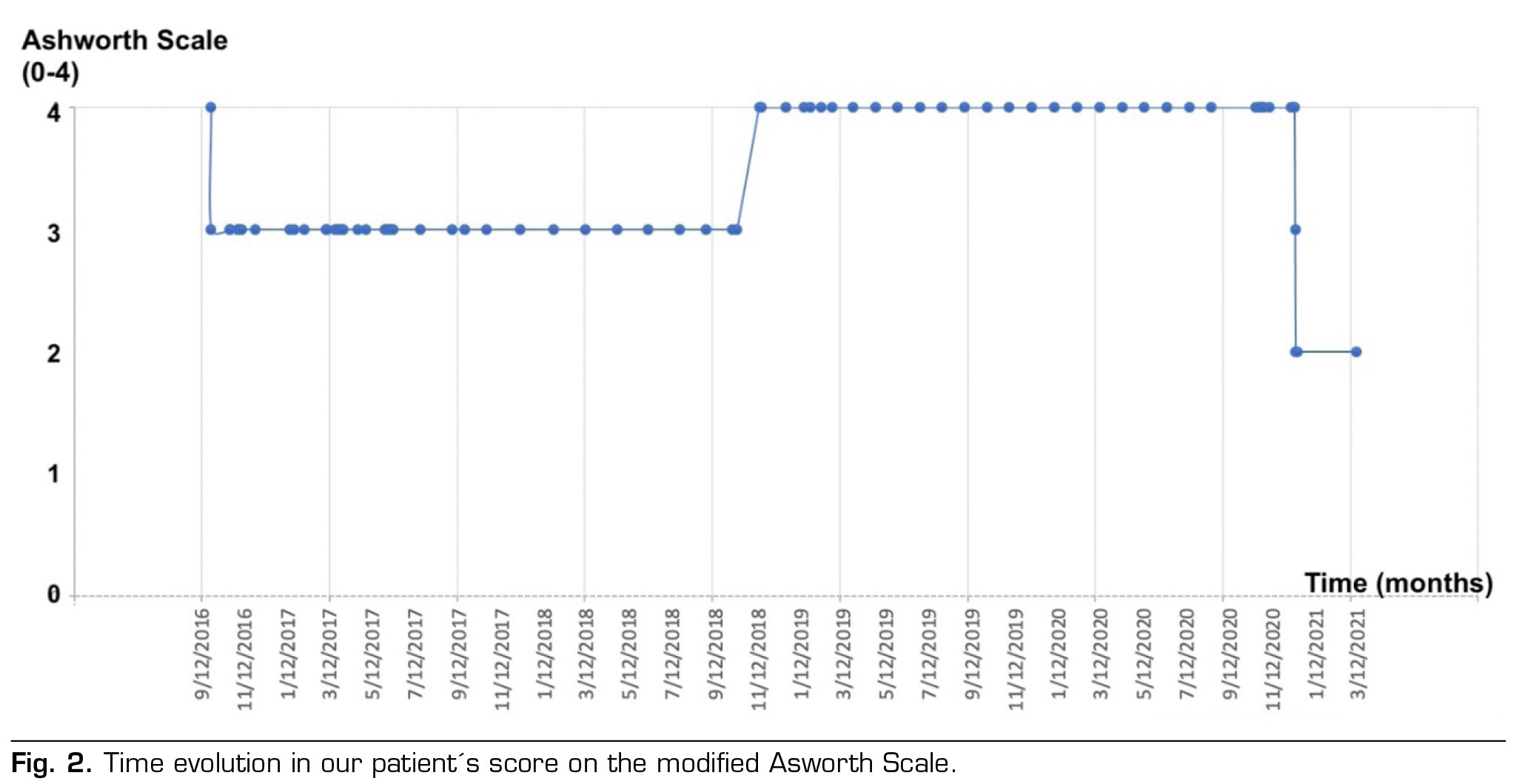 Conclusion: The intrathecal baclofen pump ensures infusion of significantly lower baclofen quantities compared to oral ingestion. Catheter-related failure is the most common complication. However, in 5.9 % of prolonged treatment cases, a tolerance pattern has been documented, necessitating escalating intrathecal drug doses to sustain clinical efficacy. In such instances, a temporary cessation of baclofen, known as a “baclofen holiday”, may be considered.