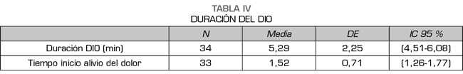 Resultados: En total, se incluyeron 34 pacientes (73,53 % mujeres, edad media 59,68 años). Los tratamientos quimioterápicos asociados a una mayor frecuencia a la aparición de DIO por RHF fueron docetaxel y oxaliplatino (ambos 35,29 %), seguidos de paclitaxel (20,59 %). En promedio, los pacientes tuvieron un valor basal de EVA de 8,55 (DE 0,79) antes de ser tratados con fentanilo. Tras el tratamiento, la intensidad media del dolor fue de 1,48 (DE 1,50), siendo la diferencia significativa (p < 0,001). La duración media del episodio de DIO fue de 5,29 minutos (DE 2,25), y el tiempo medio hasta el inicio del alivio del dolor de 1,52 minutos (DE 0,71).