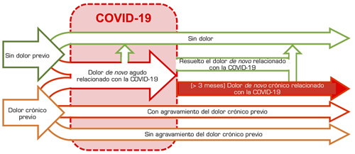 Conclusiones: Los fenómenos dolorosos post-COVID siguen diferentes trayectorias que se asocian a rasgos clínicos y epidemiológicos específicos, y posiblemente a distintos mecanismos de base y diferentes implicaciones pronósticas y terapéuticas.