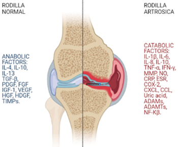 Evidencia: En la artrosis de rodilla están involucradas muchas vías de señalización y mediadores inflamatorios. El nuevo paradigma de tratamiento se basa en los tratamientos celulares sobre las vías de señalización de la inflamación, basados en componentes celulares y proteicos para combatir el entorno inflamatorio de la articulación artrósica y regenerar el tejido dañado.