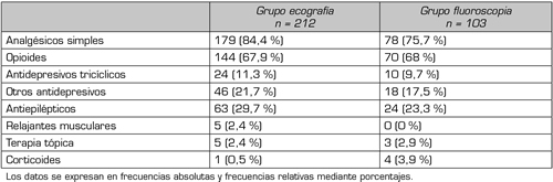 Patients and method: A cross-sectional clinical study was conducted during the month of November 2020, analysing the facet blocks performed in the Pain Unit of the Hospital Universitario Clínico de Salamanca between May 2018 and September 2020. The sample analysed consisted of 315 patients, of whom 212 underwent an echo-guided facet block in consultation and 103 were performed under radioscopic control in the operating theatre.