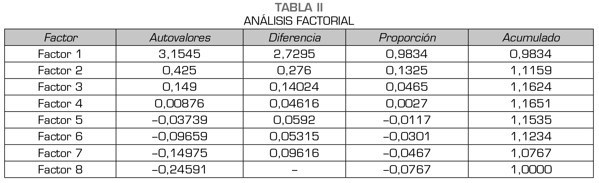 Tabla II