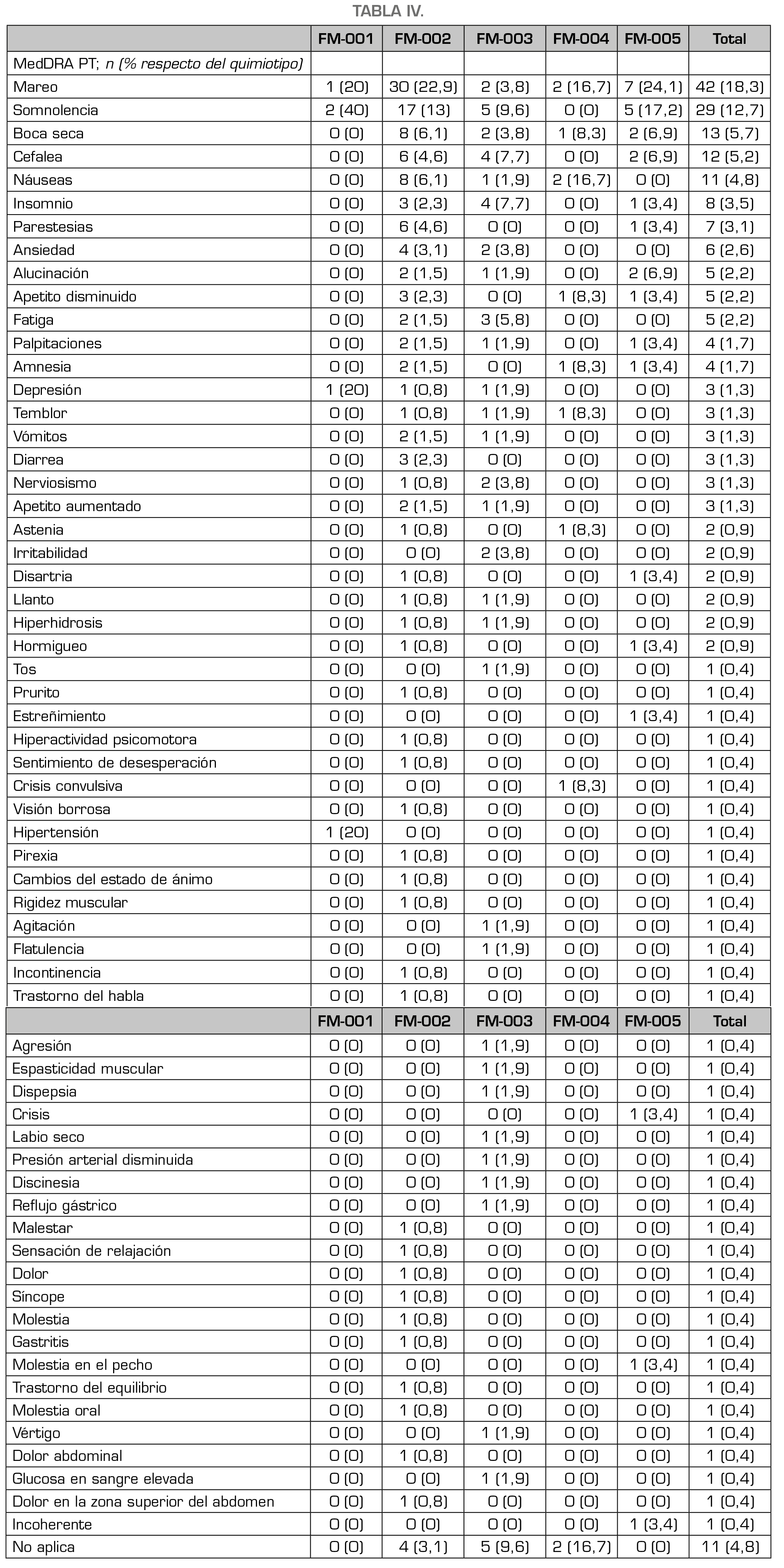Tabla IV