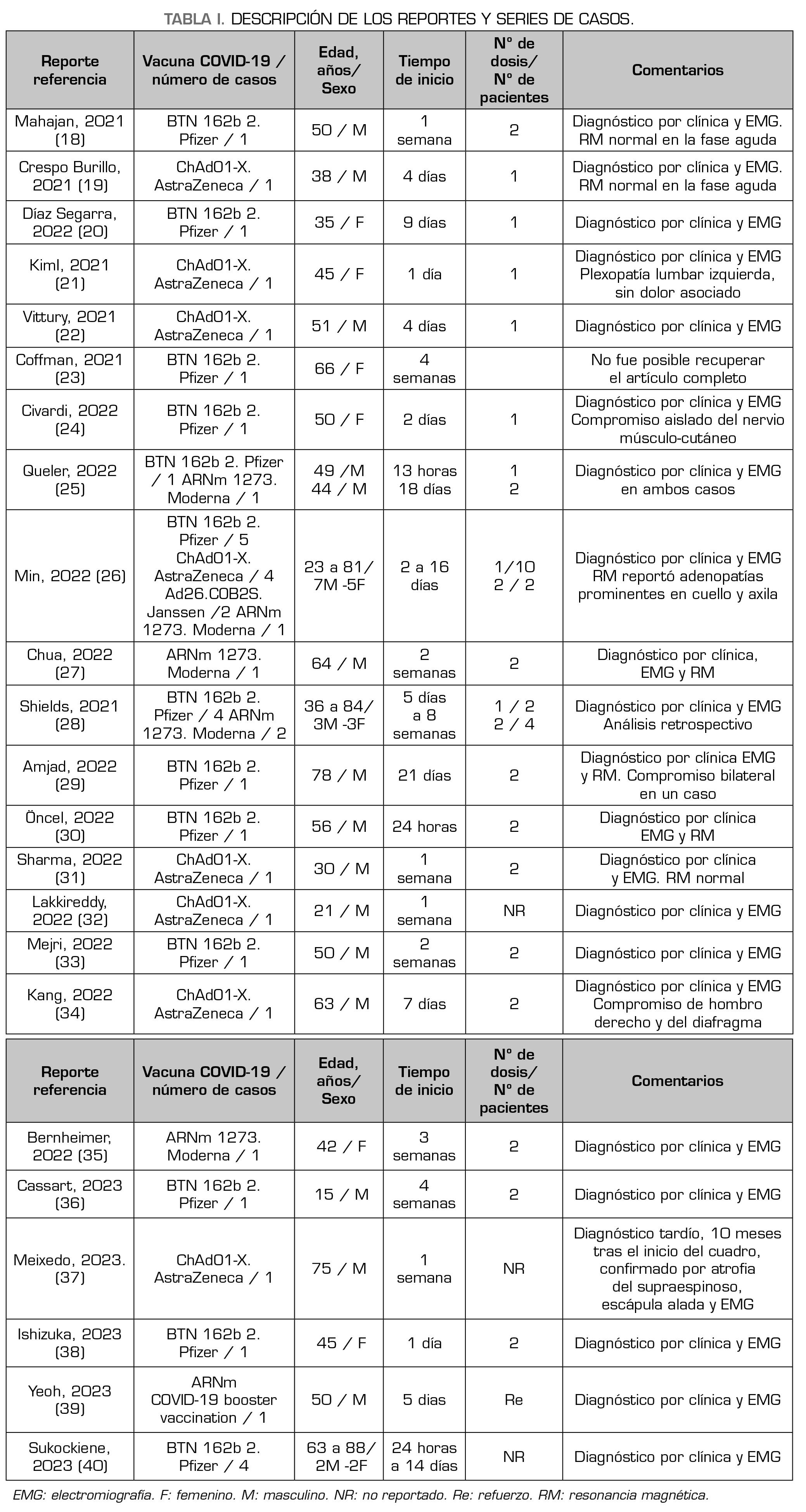 Síndrome de Parsonage-Turner: presentación atípica posterior a vacuna para COVID-19. Reporte de un caso y revisión de la literatura