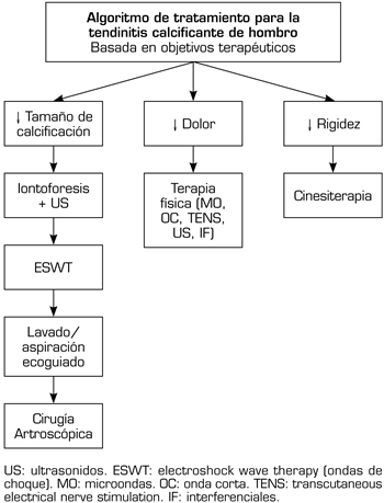 32. Fernández-Cuadros ME, Albaladejo-Florin MA, Álava-Rabasa S, Pérez-Mor OS. Algorithm of management based on treatment goals for calcifying tendonitis of the shoulder: rigidity, pain and size of calcification. MOJ Orthop Rheumatol. 2020;12(2):26-9. DOI: 10.15406/mojor.2020.12.00511.