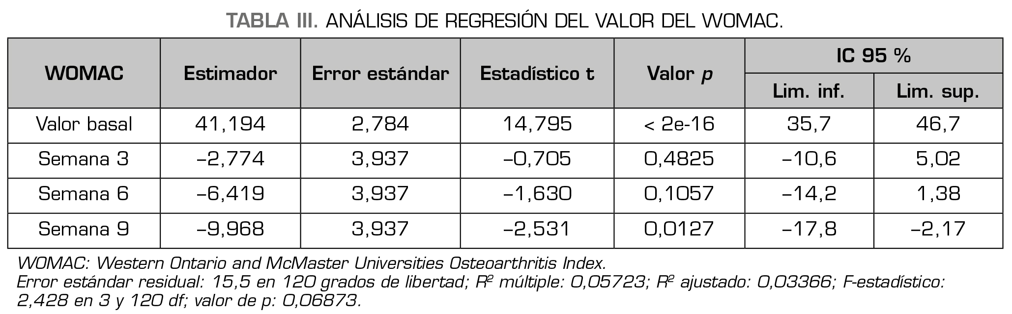 Results: All patients showed improvement in the VAS and WOMAC scores after each PRP injection, with statistical significance observed at week 9 (third injection). We found that, in a statistically significant manner, obese patients had a worse progression in treatment outcomes. There was a change in the percentage distribution of analgesic treatment modalities, although this change did not reach statistical significance. The duration of the treatment effect had a median of 8 months [P25: 4 months; P75: 13 months] (95 % CI of the mean = 6.78 to 11.61) after the last injection.